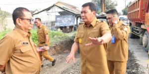 Bupati Tangerang Moch Maesyal Rasyid meninjau proses perbaikan Jalan Cangkudu–Cisoka, Selasa 6 Mei 2025.