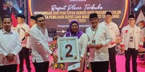 Pasangan Calon (Paslon)Bupati dan Wakil Bupati Tangerang, Maesyal Rasyid dan Intan Nurul Hikmah, mengikuti pengundian nomor urut di Kantor Komisi Pemilihan Umum (KPU) Kabupaten Tangerang pada Senin, 23 September 2024, sekitar pukul 19.25 WIB.