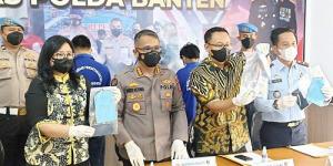 Polda Banten menggelar ungkap kasus tindak pidana penyalahgunaan narkoba jenis sabu-sabu dengan modus baru, yaitu pelaku menyembunyikan dalam kabel charger handphone (Hp).