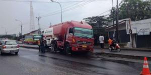 TANGERANGNEWS.com-Kecelakaan tunggal terjadi pada truk pengakut bahan bakar minyak (BBM) milik Pertamina dengan nomor polisi B-9083-SEH di Fly Over Balaraja, Minggu (28/5/2017).