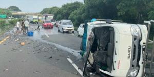 Mobil Pikap Terbalik di Tol Tangerang-Merak, Muatan Ikan Lele Berserakan di Jalan