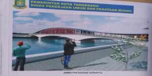 TANGERANGNews.com-Pemerintah Kota Tangerang tahun ini membangun Jembatan Dadang Suprapto, Kelurahan Gerendeng, Kecamatan Karawaci, Kota Tangerang. Jembatan baru ini didesain unik, sehingga tidak hanya digunakan untuk kendaraan melintas tapi juga untuk m