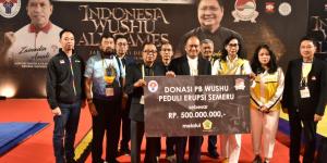 Dikomandoi Airlangga, PB Wushu Indonesia Serahkan Bantuan Bencana Gunung Semeru