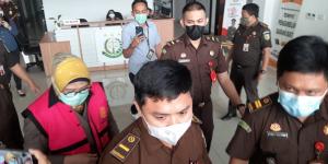 TANGERANGNEWS.com- Kepala Dinas Pemuda dan Olahraga (Kadispora), Kota Tangerang Selatan (Tangsel) E Wiwi Martawijaya yang keluar dari gedung Kejaksaan Negeri setempat langsung dikerubungi wartawan