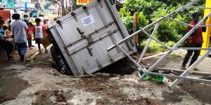Mobil Boks Pengantar Sembako Dinsos Terperosok di Poris