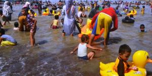 Meski Kotor, Ribuan Orang Serbu Pantai di Tangerang