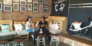 “Awalnya masih berupa kedai dan tempatnya masih outdoor di depan toko baju Monochrome. Tenyata banyak yang suka, anak-anak motor kostum sering mampir untuk ngopi. Karena peminatnya banyak tapi tempatnya kecil, kita pindah ke tempat yang lebih besar di la