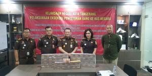 Kamis, 29 September 2022 | 16:43Kejari Kota Tangerang Setor Denda Rp2,5 Miliar Kasus Kepabeanan dan Korupsi ke Kas NegaraTANGERANGNEWS.com-Kejaksaan Negeri (Kejari) Kota Tangerang menyetorkan uang senilai Rp2.590.734.445,8 ke kas negara sebagai eksekusi pidana denda dan pidana uang pengganti dari terpidana dua kasus.