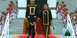 Pada upacara peringatan HUT ke-79 Kemerdekaan RI yang digelar di Istana Negara, Ibu Kota Negara (IKN) Nusantara, Kalimantan Timur, Presiden Joko Widodo (Jokowi) tampil mengenakan baju adat Kustin.