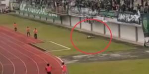 TANGERANGNEWS.com-Seorang suporter sepak bola terjatuh dari tribun penonton Stadion Indomilk Kabupaten Tangerang, Kecamatan Kelapa Dua, saat menyaksikan pertandingan Persita Tangerang kontra Persebaya Surabaya, Rabu 18 Januari 2023.