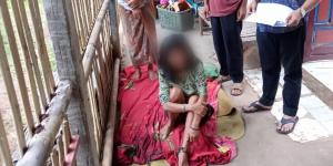 TANGERANGNEWS.com - Resih, 44, warga Kampung Taban Ladu, Desa Taban, Kecamatan Jambe, Kabupaten Tangerang, dirantai oleh keluarganya.