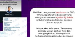 Pemerintah Kabupaten (Pemkab) Tangerang mengimbau masyarakat untuk waspada terhadap kasus penipuan melalui media sosial yang mengatasnamakan Aparat Pemkab Tangerang.