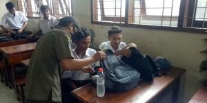 Satuan Polisi Pamong Praja (Satpol PP) Kota Tangerang melakukan razia tas bawaan dari para pelajar di wilayah Kota Tangerang baik tingkat SMP hingga SMA/K.