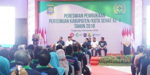 TANGERANGNEWS.com-Presiden Joko Widodo membuka kegiatan Summit, Seminar Kabupaten/Kota Sehat dan Expo 2018 di ruang Al-Amanah, Puspemkot Tangerang, Minggu (4/11/2018).