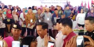 TANGERANGNEWS.com-Presiden Joko Widodo membagikan 5 ribu sertifikat kepada warga Kabupaten Tangerang di Lapangan Maulana Yudha Negara,
