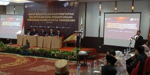 Komisi Pemilihan Umum (KPU) Kota Tangerang Selatan (Tangsel) mengumumkan pleno penetapan Anggota DPRD Tangsel terpilih hasil Pemilu 2024, pasca putusan Dismissal Mahkamah Konstitusi (MK)