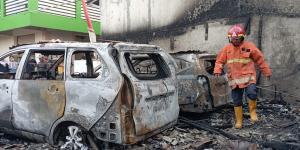 Dua unit mobil yang terparkir di garasi rumah warga, Kelurahan Panunggangan Utara, Kecamatan Pinang, Kota Tangerang, tiba-tiba saja mengeluarkan api hingga ludes terbakar, Senin 19 Agustus 2024.