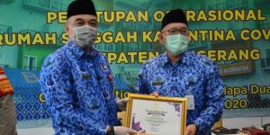 TANGERANGNEWS.com-Bupati Tangerang Ahmed Zaki Iskandar resmi menutup fasilitas perawatan pasien COVID-19 Griya Anabatic di Kecamatan Kelapa Dua, Jumat (17/7/2020)