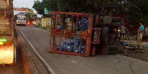 Sopir Mengantuk, Truk Tabrak Pembatas Jalan & Pemotor di Pamulang