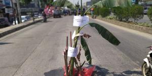 Mahasiswa & Warga Tanam Pohon Pisang di Lubang Jalan Siliwangi