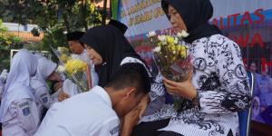 Penuh Haru, Siswa di Tangerang Sungkeman & Suapi Guru