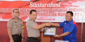 TANGERANGNEWS.com-Kapolda Banten Brigadir Jenderal Listyo Sigit Prabowo menemui sejumlah serikat buruh di Banten, Senin (30/4/2018). Pertemuan yang berlangsung di rumah