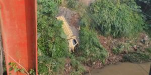 Sebuah truk bermuatan pasir dilaporkan terperosok ke bawah jembatan di Jalan Raya Cisauk Lapan, Kecamatan Cisauk, Kabupaten Tangerang, Senin 20 Oktober 2025, pagi.