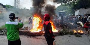 Demo ke Banten, Buruh Bakar Ban Lumpuhkan Jatiuwung