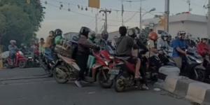 TANGERANGNEWS.com- Sejumlah pengendara sepeda motor di Jalan Maulana Hasanuddin, Kelurahan Poris Gaga, Kecamatan Batuceper, Kota Tangerang, nekat menerobos palang pintu perlintasan kereta api, Sabtu 11 Maret 2023.