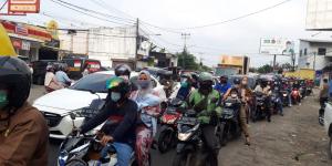 TANGERANGNEWS.com-Arus lalu lintas di Jalan KH Hasyim Asyhari, Kecamatan Cipondoh, Kota Tangerang tepatnya di depan Situ Cipondoh macet, Sabtu (15/5/2021)