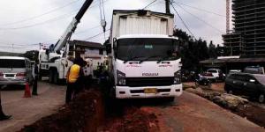 Mobil Boks Sabun Mandi Terguling di Ciater Serpong