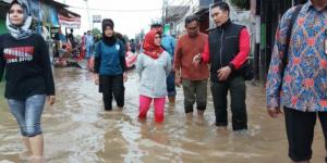 Siti Nur Azizah Ngampung ke Lokasi Banjir di Tangsel