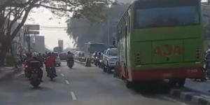 Rem Blong, Bus di Cibodas Tangerang Tabrak 2 Motor Tersangkut Pembatas Jalan