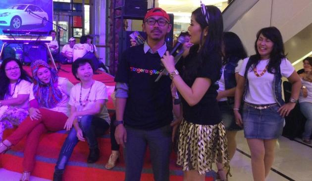 MC Yeny Tan mengerjai salah satu awak media tangerangnews.com untuk bermain games dalam pesta ulang tahun ke-6 tangerangnews.com (Dira Derby / TangerangNews)