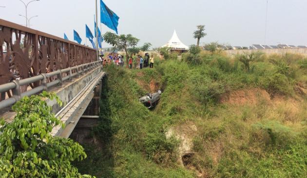 Mobil Honda Brio masuk ke pinggir jurang BSD Serpong.