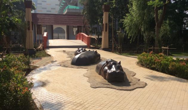 Taman Potret Tangerang terdapat sejumlah ornamen untuk berselfie, salah satunya kuda nil. (Dira Derby / TangerangNews)