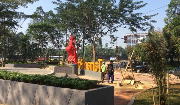 Tampak para pekerja masih mengebut untuk menyelesaikan pengerjaan Taman Potret. (Dira Derby / TangerangNews)