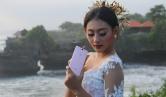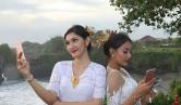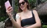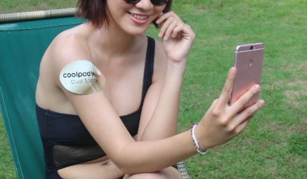 Salah satu model menunjukan ponsel Coolpad Max (@TangerangNews / Raden Bagus Irawan)