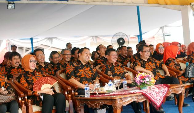 Sejumlah Pejabat di Kota Tangerang terlihat tertawa saat menyaksikan sebuah pertunjukan dalam Festival Cisadane 2016 (@TangerangNews.com 2016 / Raden Bagus Irawan)
