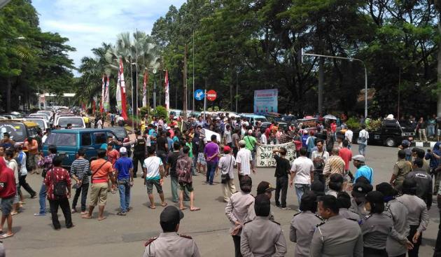 Sopir angkot demonstrasi di Puspem Kota Tangerang. (@tangerangnews 2017 / Rangga A Zuliansyah)