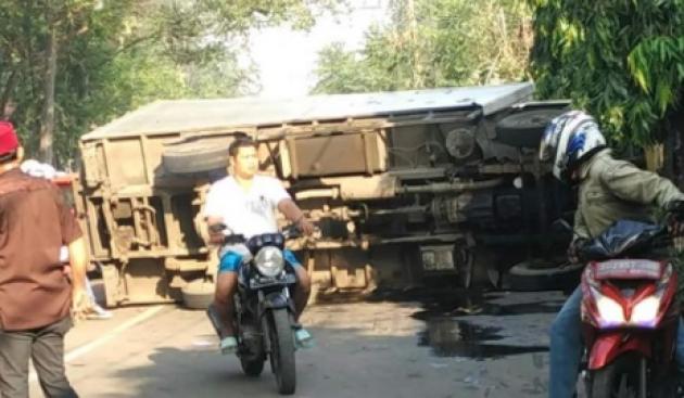 Truk terbalik di dekat Danau Cipondoh Tangerang