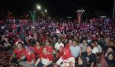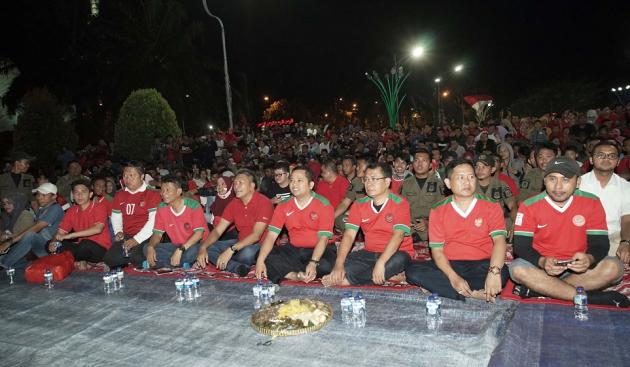 Wali Kota Tangerang bersama sejumlah pejabat tampak saat menggelar nobar Timnas U-22 yang berlaga melawan Malaysia di ajang Sea Games 2017 (@TangerangNews 2017 / Humas Kota Tangerang)