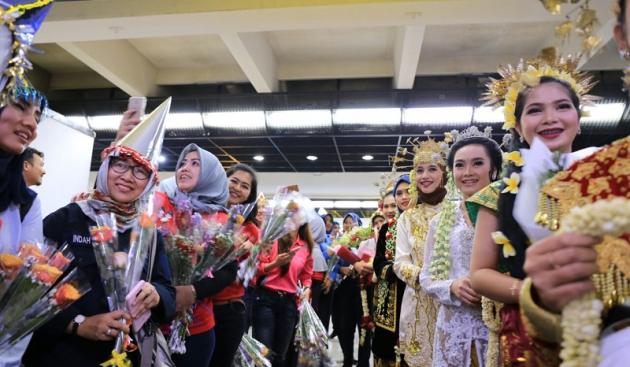 Karyawan PT Angkasa Pura II Sambut dengan Baju Adat