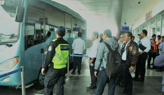 Tampak para penumpang saat menunggu shuttle bus di gedung TOD Bandara Soekarno-Hatta. (@TangerangNews 2018 / Rangga A Zuliansyah)