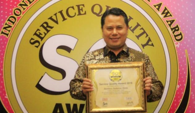 Executive General Manager Bandara Soekarno-Hatta, Agus Haryadi saat mendapatkan penghargaan tertinggi (Diamond Award) di Service Quality Award (SQA) 2019.
