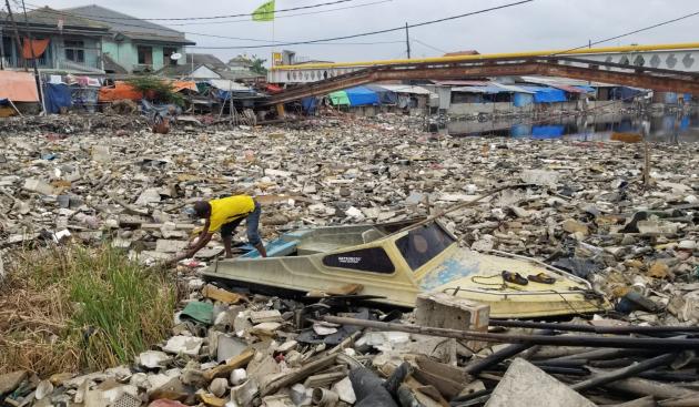 Tampak lautan sampah di Kali Prancis, Dadap, Kecamatan Kosambi, Kabupaten Tangerang. (@TangerangNews / Rangga A Zuliansyah)