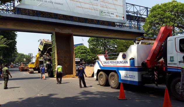 Hidrolik Naik, Truk Tanah Tersangkut JPO