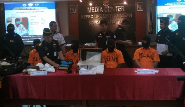 ?Kepala Kantor Bea dan Cukai Bandara Soekarno-Hatta, Okto Irianto mengatakan, dalam tangkapan pertama petugas berhasil mengamankan 1.684 gram sabu dari tersangka SB, 27, yang menumpanggi Malaysia Airlines (MH-711).