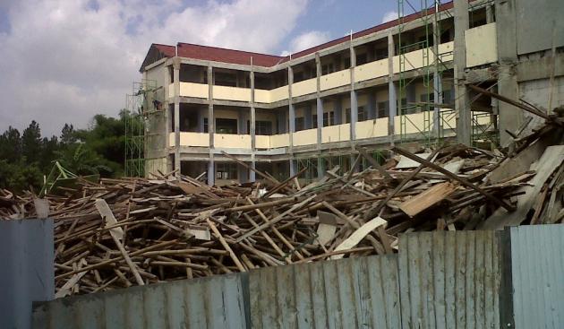"Ini kan masih dalam proses pembangunan. Jadi  wajar ada keluhan maupun ketidaknyamanann saat  belajar mengajar," ujarnya, selasa (7/1). Disekolah yang mempunyai lahan seluas 5.400