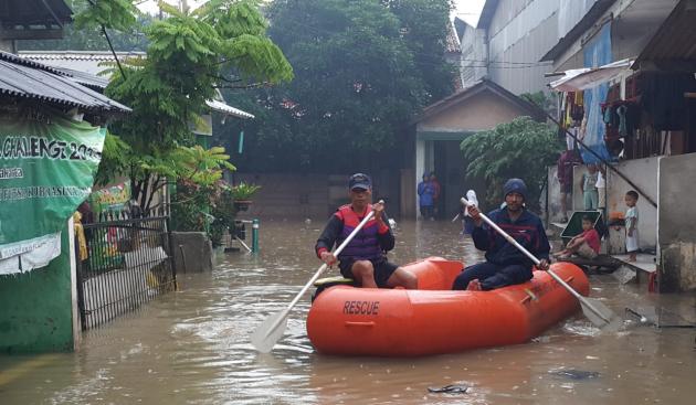 TANGERANG-Badan Penanggulangan Bencana Daerah (BPBD) Kota Tangerang menerjunkan empat perahu karet untuk mengevakuasi ratusan warga Kelurahan Petir, Kecamatan Cipondoh, yang terendam banjir hingga satu meter.